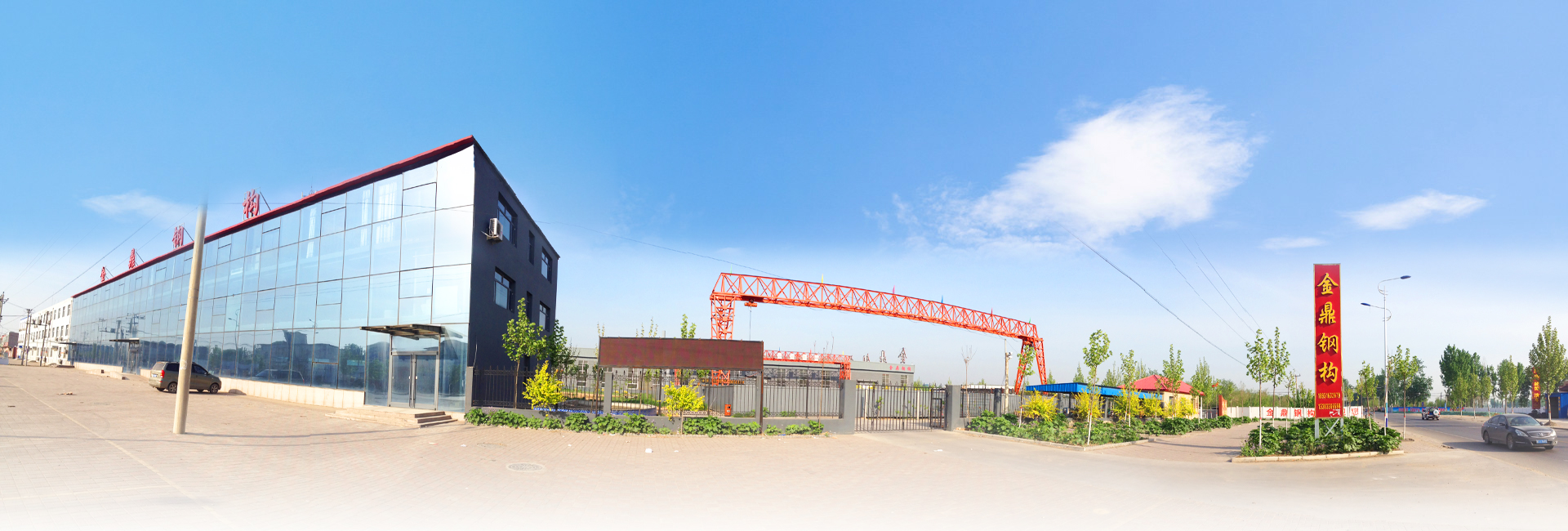 深州市金鼎建材有限公司鋼構(gòu)生產(chǎn)基地,坐落于深州市護(hù)駕遲鎮(zhèn),占地50余畝,并擁有現(xiàn)代化標(biāo)準(zhǔn)加工基地1.5萬平方米,現(xiàn)代化辦公樓3000平方米,具備年產(chǎn)1萬噸鋼構(gòu)件的生產(chǎn)規(guī)模,是集鋼構(gòu)設(shè)計(jì)、制作、銷售、施工安裝為一體的大型綜合性鋼構(gòu)企業(yè)。